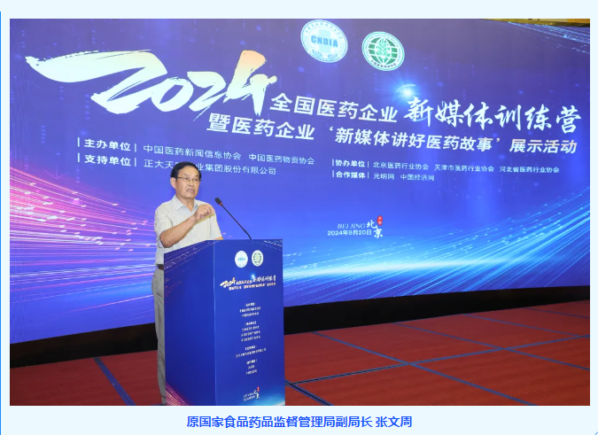 9月20日,由中国医药新闻信息协会和中国医药物资协会联合主办,北京医药行业协会、天津市医药行业协会、河北省医药行业协会协办的“2024全国医药企业新媒体训练营”在北京举办。为期一天的活动中,来自全国的医药企业代表近200人汇聚一堂,对医药企业如何在新媒体时代做好传播进行了深入的探讨。原国家食品药品监督管理局局长邵明立、原国家食品药品监督管理局副局长张文周、中国非处方药物协会原会长白慧良、国家药监局政策法规司原司长刘沛、中国医药企业管理协会执行会长吴海东、中国医药新闻信息协会会长张冀湘、中国医药物资协会党支部书记周立、中国医药新闻信息协会副会长陈朸为等领导和嘉宾参加了活动。上午活动由中国医药新闻信息协会副会长申敬旺主持。