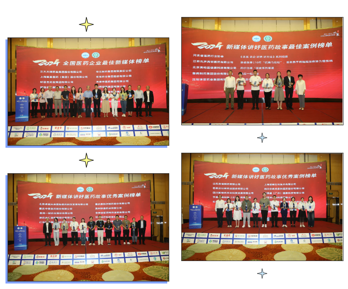 在活动现场,还发布了2024全国医药企业最佳新媒体榜单、2024新媒体讲好医药故事最佳案例、2024新媒体讲好医药故事优秀案例。据主办方中国医药新闻信息协会有关负责人介绍,本次活动收到申报表近百份,其中正大天晴药业集团股份有限公司、华北制药集团有限责任公司等10家单位入选2024全国医药企业最佳新媒体榜单,河北省医药行业协会、江苏先声再明医药有限公司、北京赛柏蓝健康科技有限公司等5家单位的新媒体作品入选2024新媒体讲好医药故事最佳案例,北京卓越未来国际医药科技发展有限公司、贵州一树药业股份有限公司等20家单位入选2024新媒体讲好医药故事优秀案例。